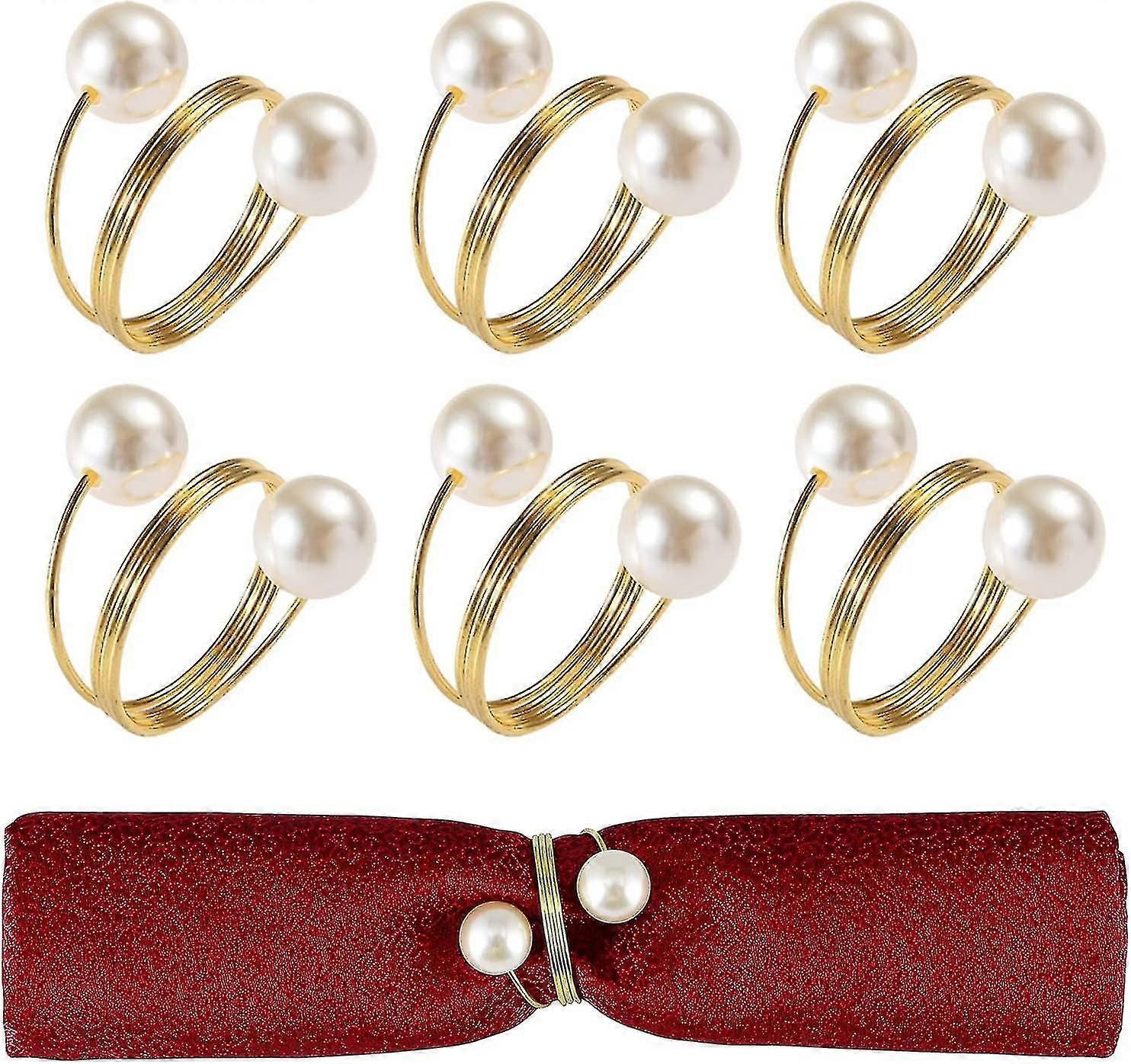 Napkin Rings With Double-pearl Design, Serviette Buckles For Wedding, Party