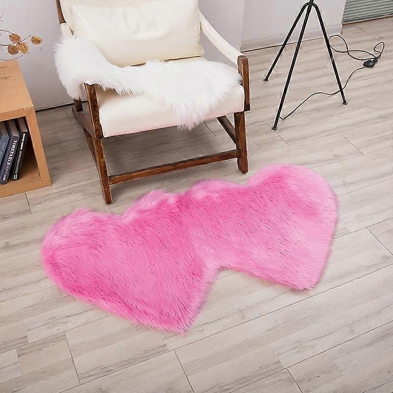Double Heart Shape Rugs, Fluffy Faux Sheepskin Area Rug Carpet, Love Shaped Plush Mats for Living Ro
