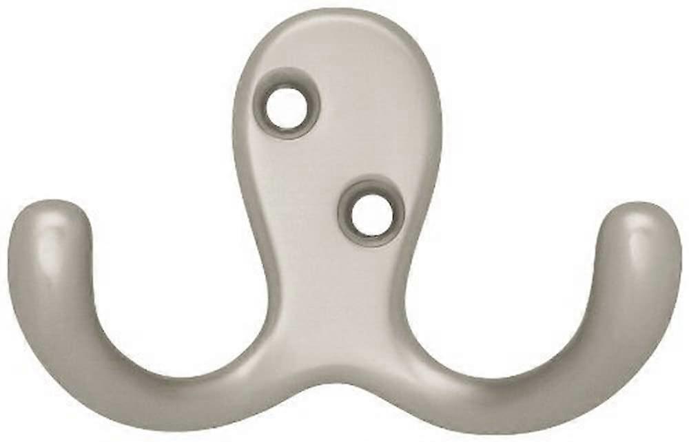 Double Prong Robe Hook Satin Nickel Finish for Bathroom and Bedroom
