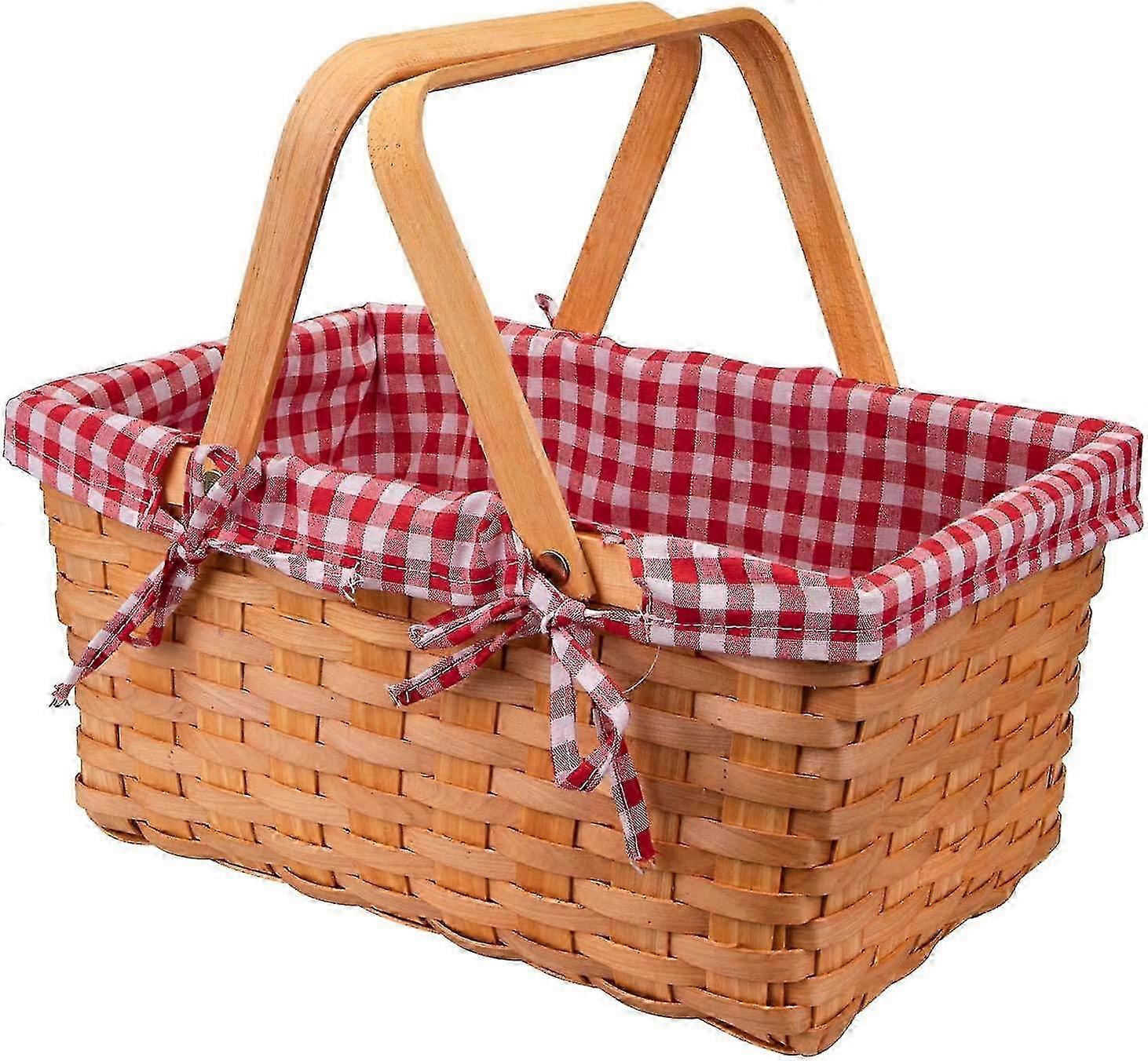Natural Woven Picnic Basket with Double Folding Handles - Storage Hamper