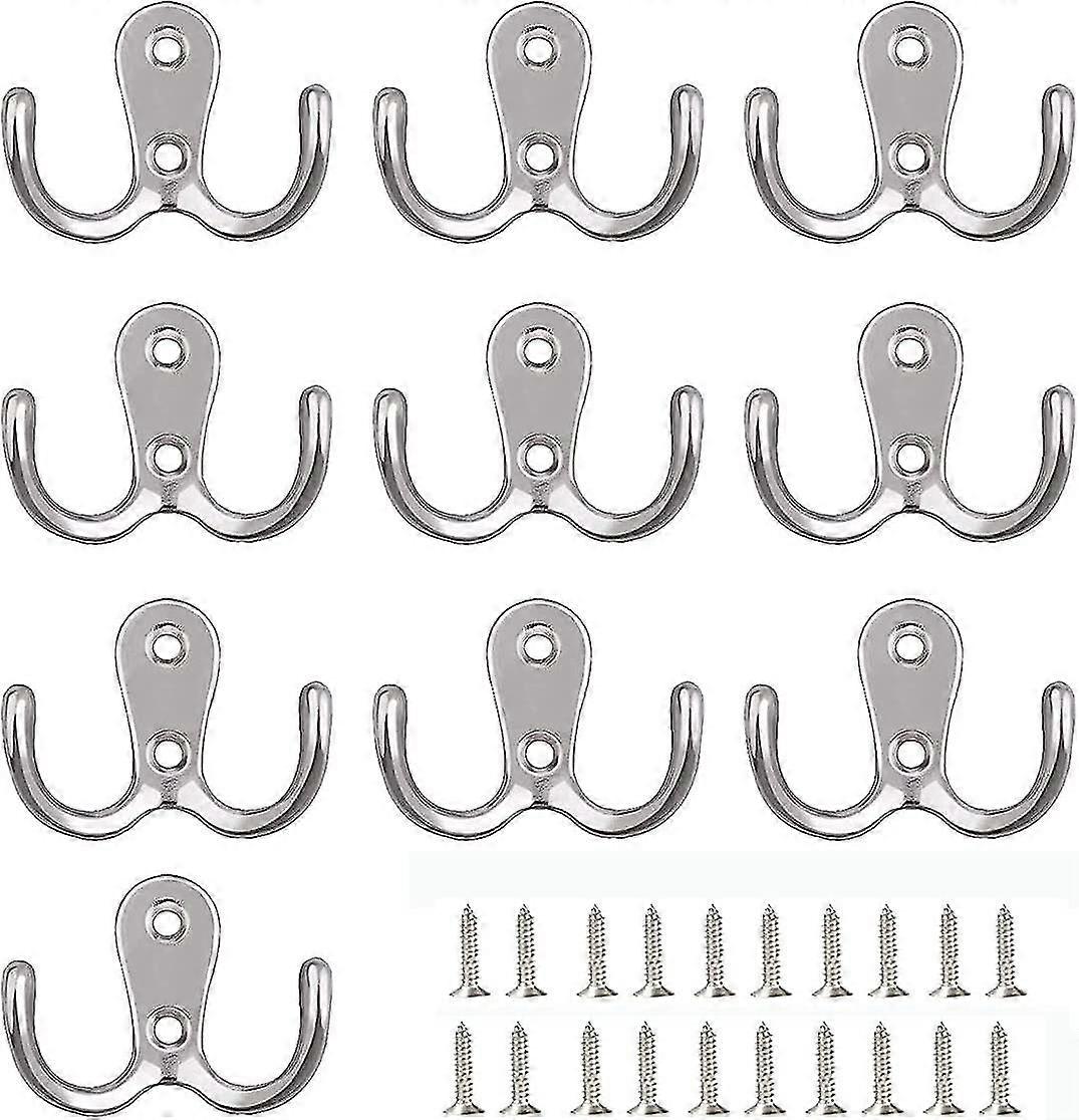 Double Hook Hanger Set, 10 Double Hooks + 20 Screws, Zinc Alloy Material for Multiple Scenarios