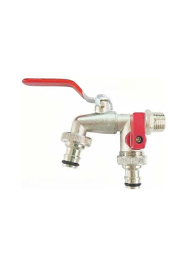 Double Ball Outlet Faucet 11282, 1/2 Inch, Matte, Chrome Plated, Additional 3/4 Inch Outlet - Red Style C