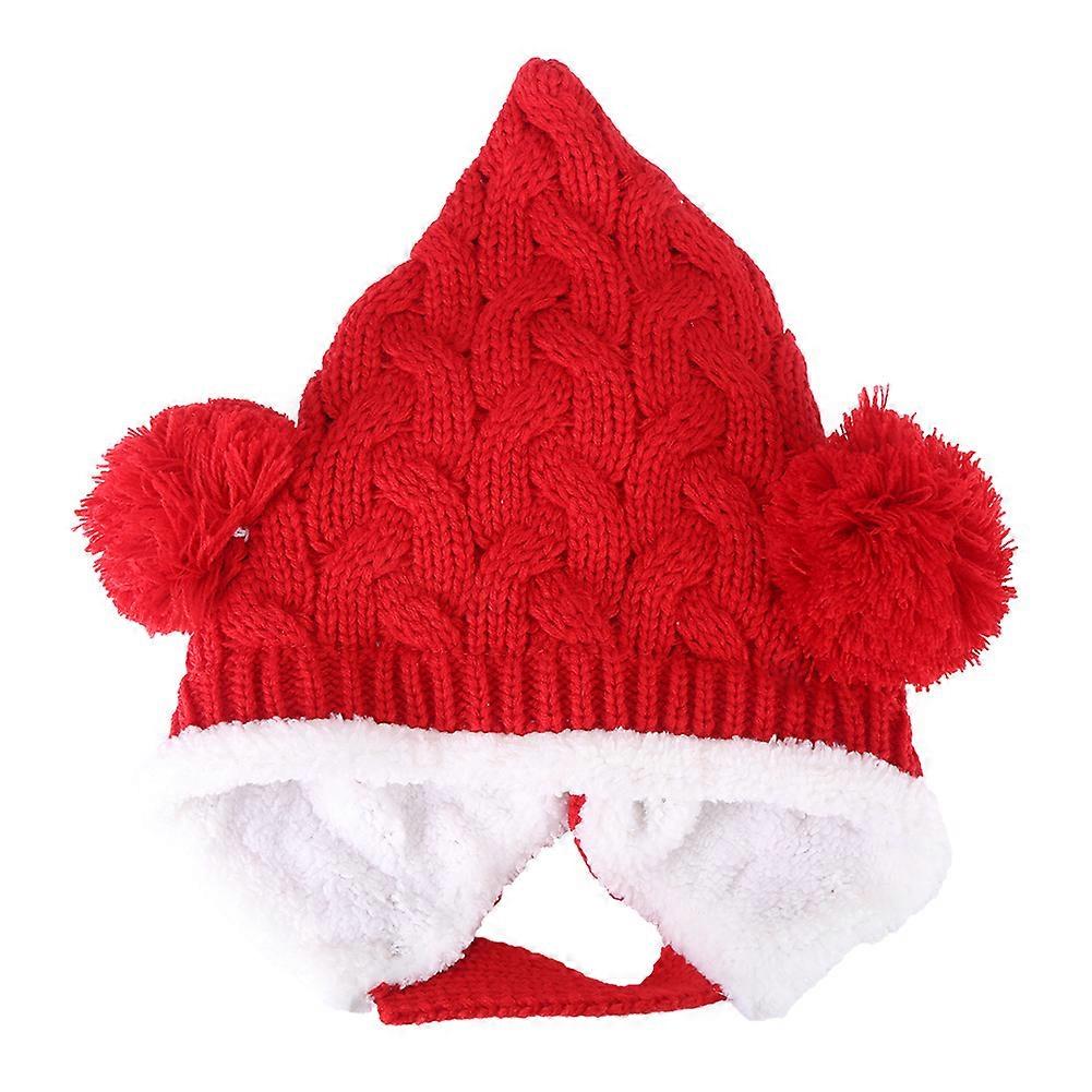 Comfortable Baby Hat with Double Ball Toddler Winter Knitted Caps for Infant Boys Girls Red