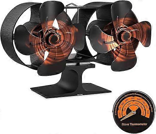 Double Motors Stove Burner Fan, Small Size 8 Blades Fireplace Silent Heat Powered Eco Stove Fan for Gas/Pellet/Wood/Log Burning Stoves with Thermomete