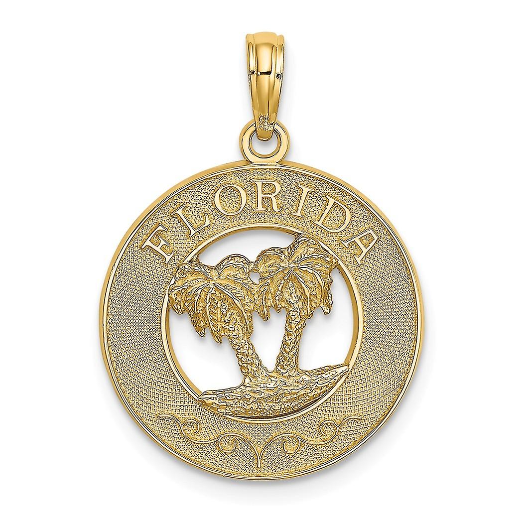 14k Gold Florida Round Frame With Double Palm Tree Center Charm 24.7x19.1mm Wide 1.8mm Thick Pendant Necklace for Women