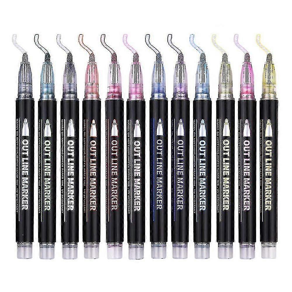 Double Line Outline Pens 12 Colors Outline Metallic Markers Glitter Outline Pens Writing Drawing Pe