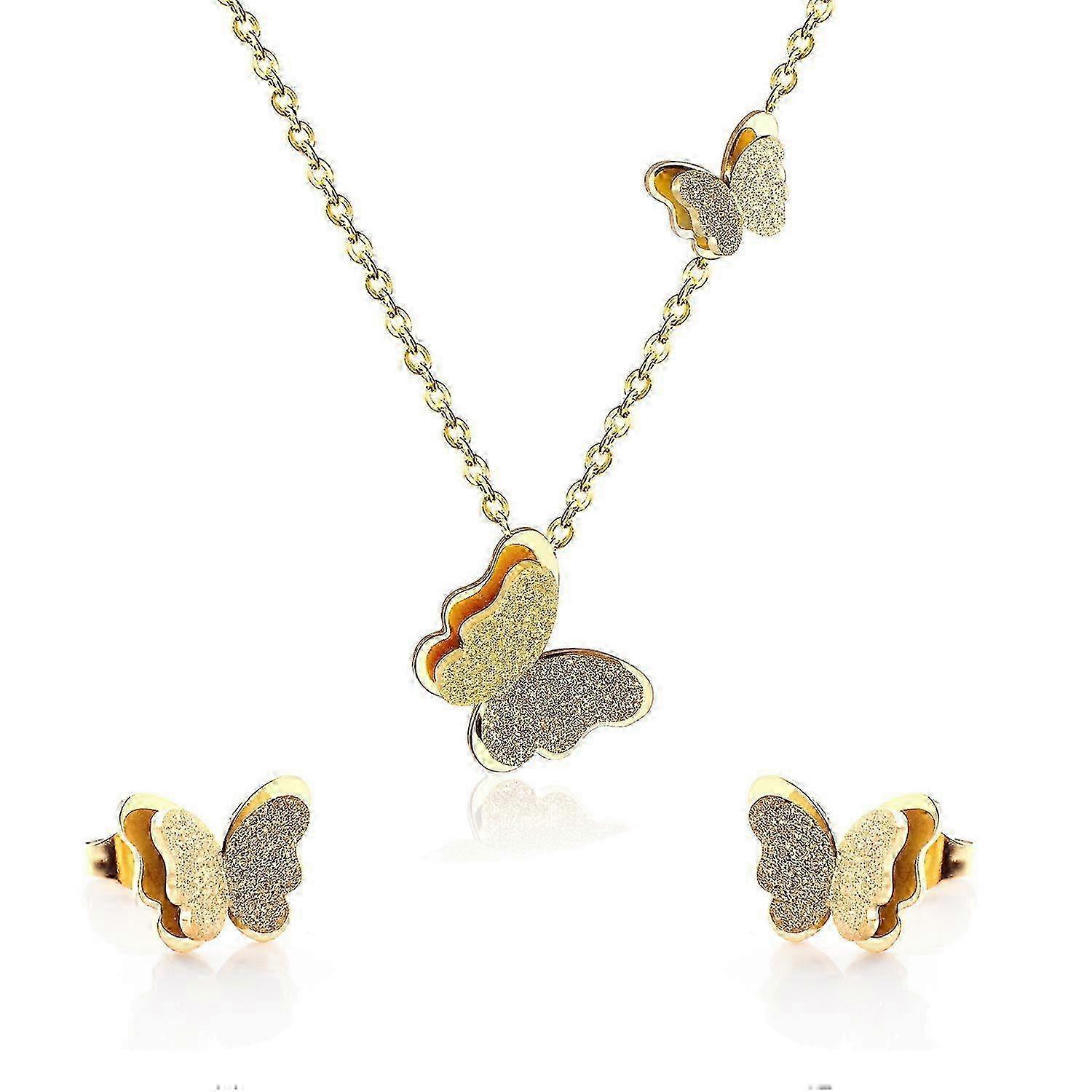 Double Layer Butterfly Pendent Necklace With Earring Butterfly Jewllery Set