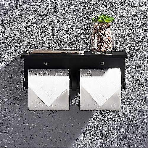 Double Roll Holder, Wall Mounted Toilet Paper Holder With Two Rolls, 304 Stainless Steel Roll Holder, No Drill Roll Holder For Bathroom (black)