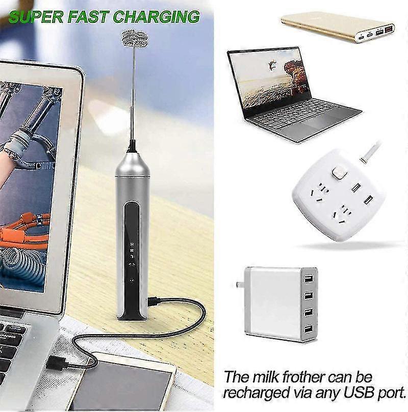 Electric Milk Frother with Double Whisk, USB Rechargeable, Black