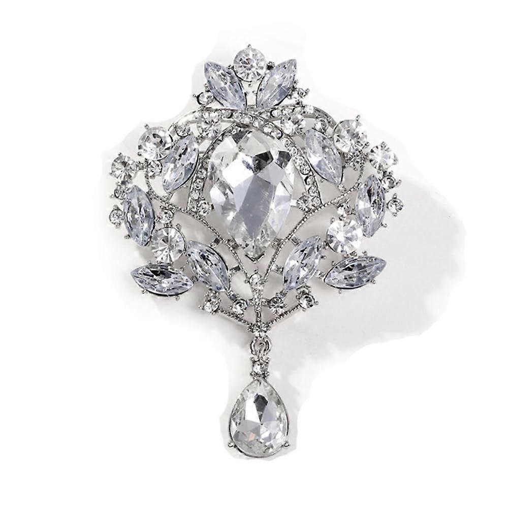 Silver Rhinestone Brooch for Women with Dangle Drop Bling