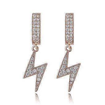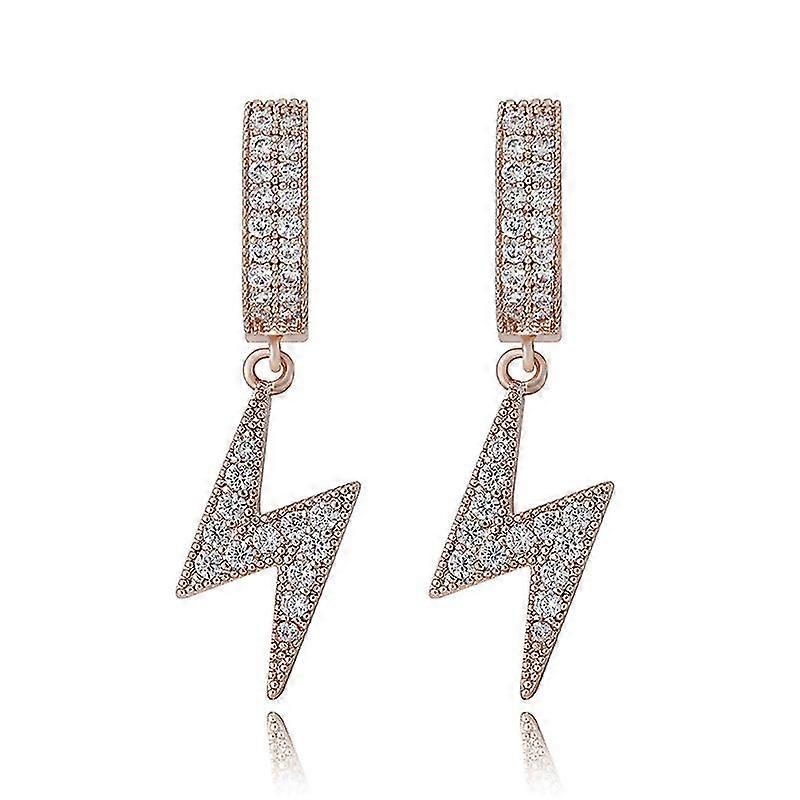 Dangle Drop Iecd Out 18k Gold Plated Lightning Bolt Hinged Hoop Earrings For Men Women Fashion Hip Hop Jewelry Gifts Geometric Flash Hypoallergenic Ea