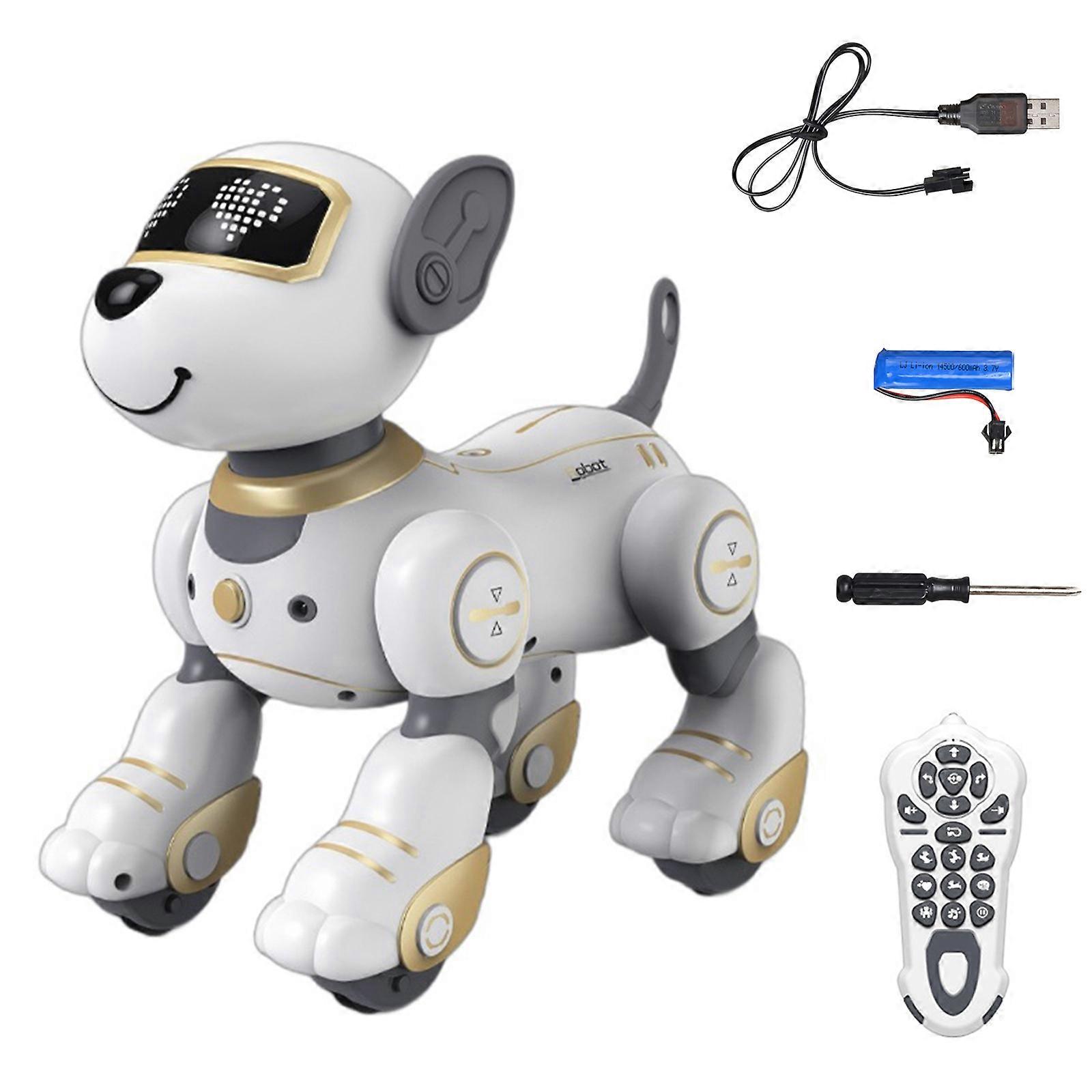 Remote Control Robot with Dance, Music, Light Effects, Interactive Programmable Toy for Kids Boys Girls, Gold Features: Rich and Flexible Actions: With a wide range of actions, this robot toy can easily perform various movements such as moving forward, moving backward, turning left, turning right, doing somersaults, lying down, sitting down, being playful, and even doing push-ups. Singing and Dancing: Not only can this remote-controlled robot sing beautifully, but it can also dance while singing. It provides a fun and interactive experience for children, combining music and movement in a delightful way. Interactive Pet-Like Fun: This remote control toy can interact with children in a pet-like manner. It responds to touch, creating an interactive and entertaining experience. Children can pet and play with the robot as if they were playing with a real pet. Intelligent Movement Following: This robot can follow movements and track objects. It can autonomously move and follow children's actions, providing a fun and engaging playtime experience. Programmable Design: This intelligent robot is programmable and allows children to create complex and dynamic music and dance routines, thus fostering creativity and imagination. Specifications: Item Name: Remote Control Robot Main Material: Plastic, Electronic Components Suitable Age: 3+ Robot Battery: 3.7V 600mAh Lithium Battery Charging Time (Single Battery): 2 hours Endurance (Single Battery): about 40 minutes Remote Control Method: Handle remote control Remote Control Distance: 10 meters Remote Control Battery: 2 pcs AAA batteries (not included) Product Color: Gold Product Size: 24.5*23.5*13.5cm/9.65*9.25*5.31inch Package Information:  Package Size: 26*16*27.5cm Package Weight: 1012g Package List: 1 * Robot 1 * 600mAh Lithium Battery 1 * Remote Controller 1 * Screwdriver 1 * USB Charging Cable 1 * User Manual Note: Always make sure that children are using the remote control robot under adult supervision. This will ensure their safety and prevent any accidents or misuse of the toy. Choose a remote control robot that is suitable for your child's age and developmental stage. Some robots may have small parts that can be a choking hazard for younger children.