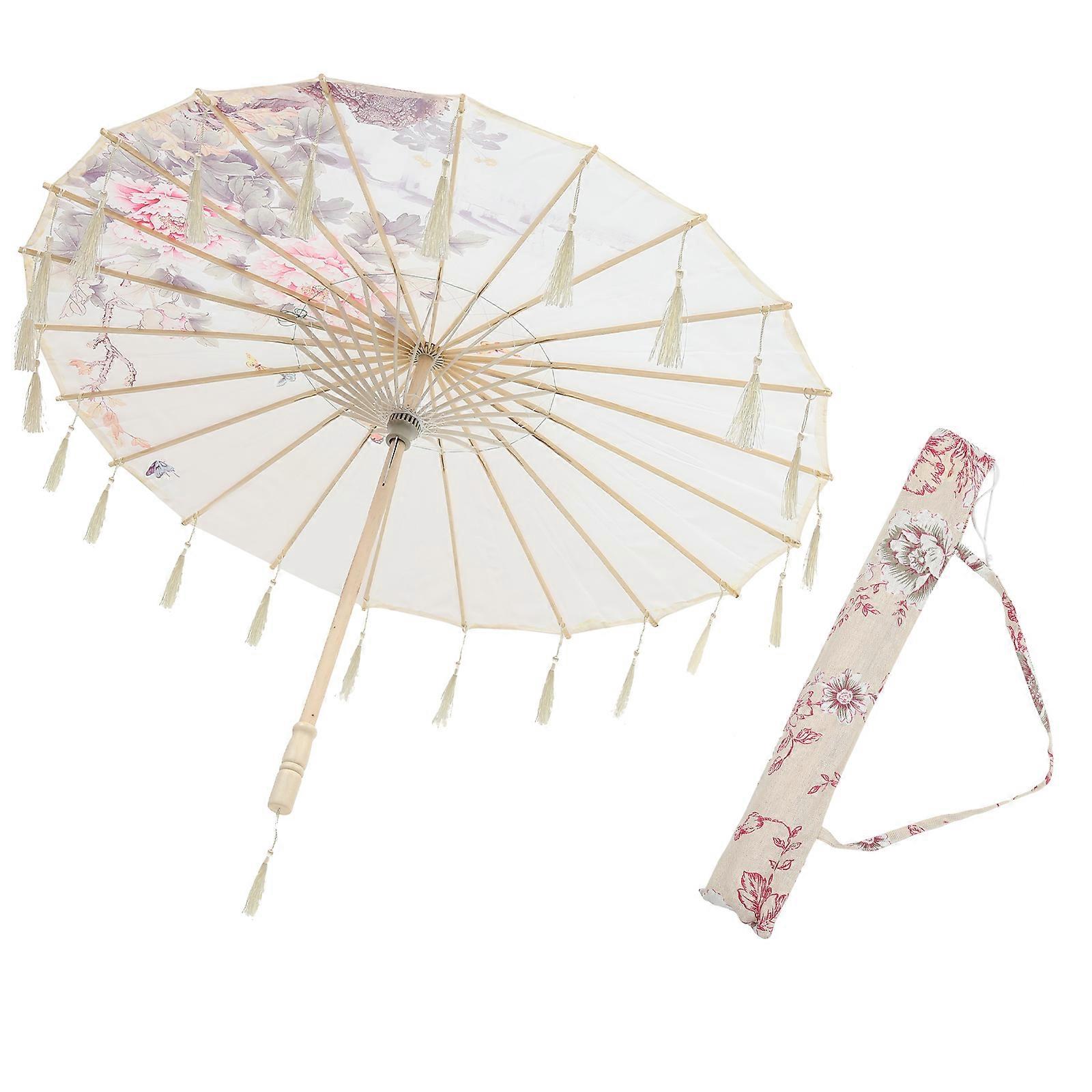1 Set of Chinese Style Silk Cloth Tassel Umbrella for Dance and Photography