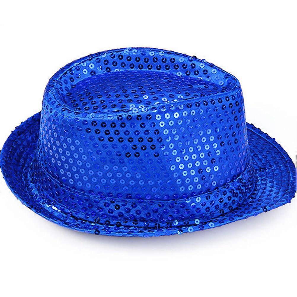 Dance Hat Sequined Jazz Hat Set Masquerade Style Stage Performing Accessory for Adults Blue Satin 2Pcs