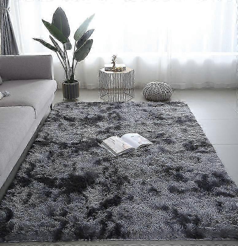 Dark Gray Shaggy Fluffy Area Rug Anti-skid Room Carpet Soft Floor Mat