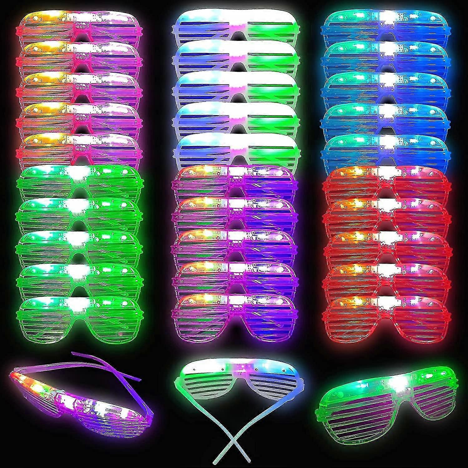 30 Pieces Of 6 Colors Glow In Dark Glow Glasses Party, Party Supplies For Mardi Gras Christmas Party