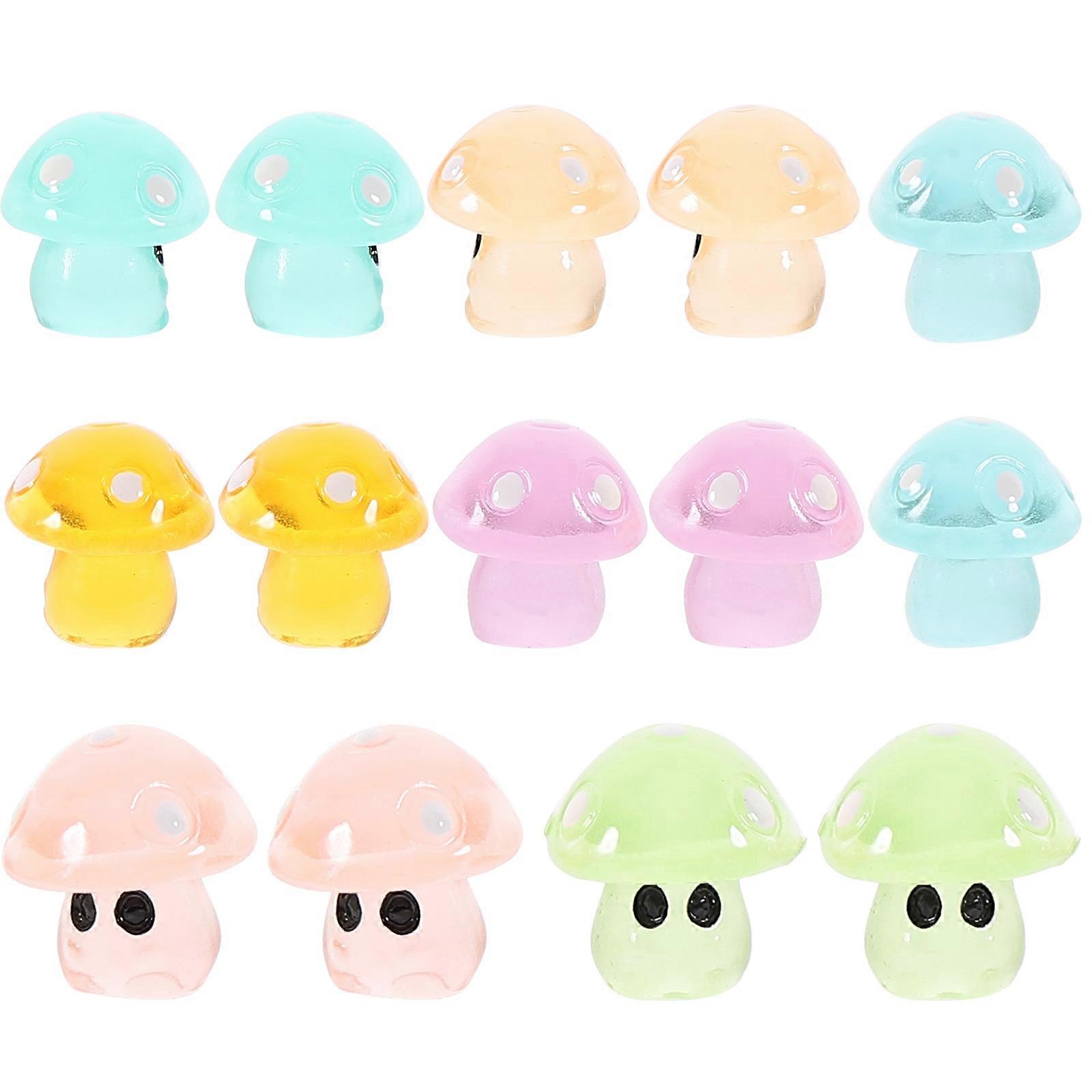 14pcs in the Dark Mushroom Figurines Resin Micro Garden Decor for Desk Home Display Colorful Ornaments for Terrarium Indoor Outdoor Use