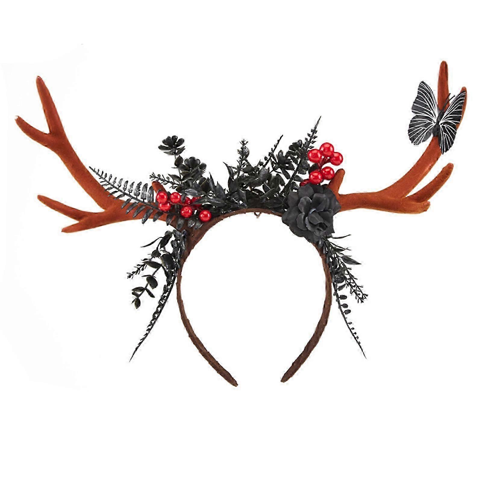 Dark Rose Mistletoe Elk Halloween Cosplay Headband with Reindeer Horns