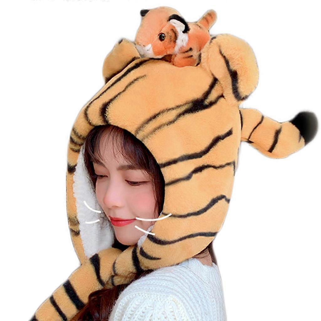 Tiger Hat Tail Moving Cap Funny Toy Animal Hat Girls Women Cartoon Movable Tail Kawaii Plush Hat Toy Gift for Adult Kid Yellow