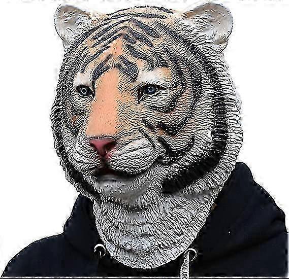 Tiger Mask Halloween Latex Animal Mask Novelty Rubber Costume Full Head masks,White