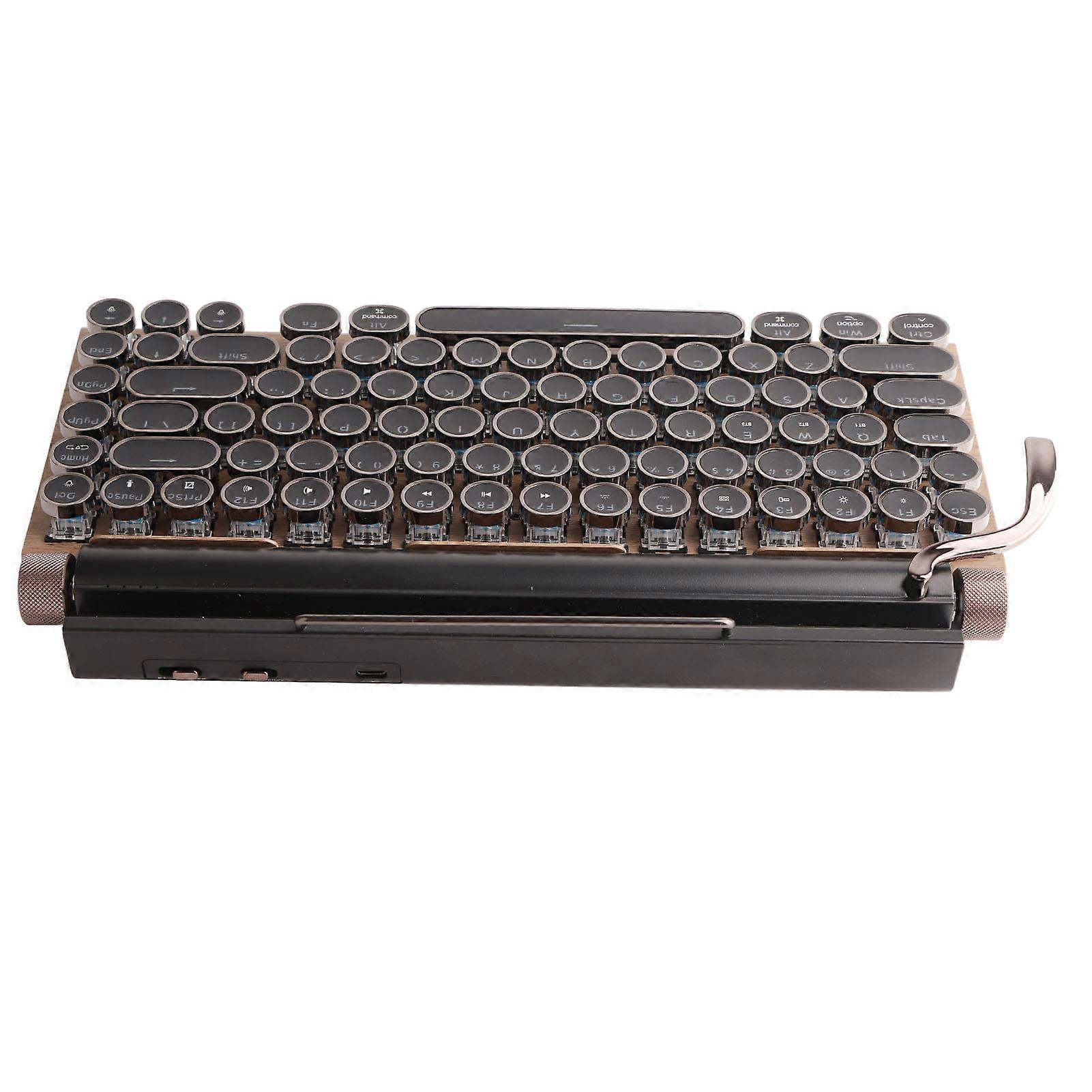 Typewriter Keyboard 83 Keys Vintage Wireless Bluetooth Mechanical Keyboard with Metal Round Cap Wood Grain Color