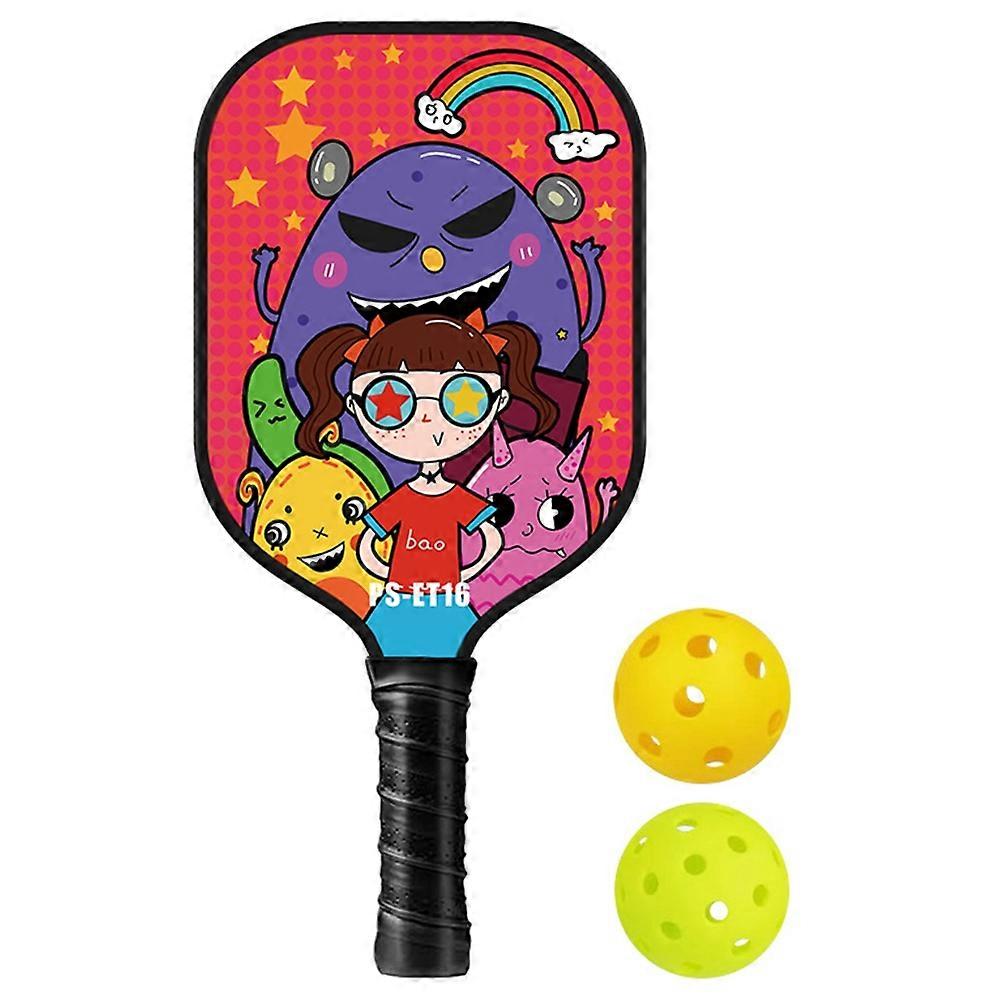 Type B Cartoon Design Kids Fiberglass Pickleball Racket with 2 Balls