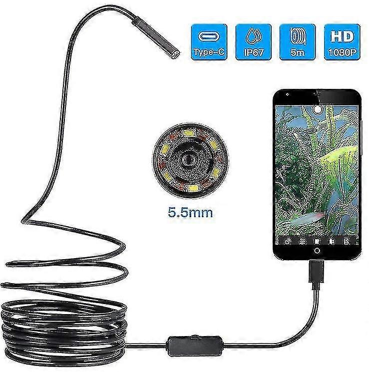 Type C Borescope Usb Inspection Camera Hd,6 Adjustable Led Light -16.4ft