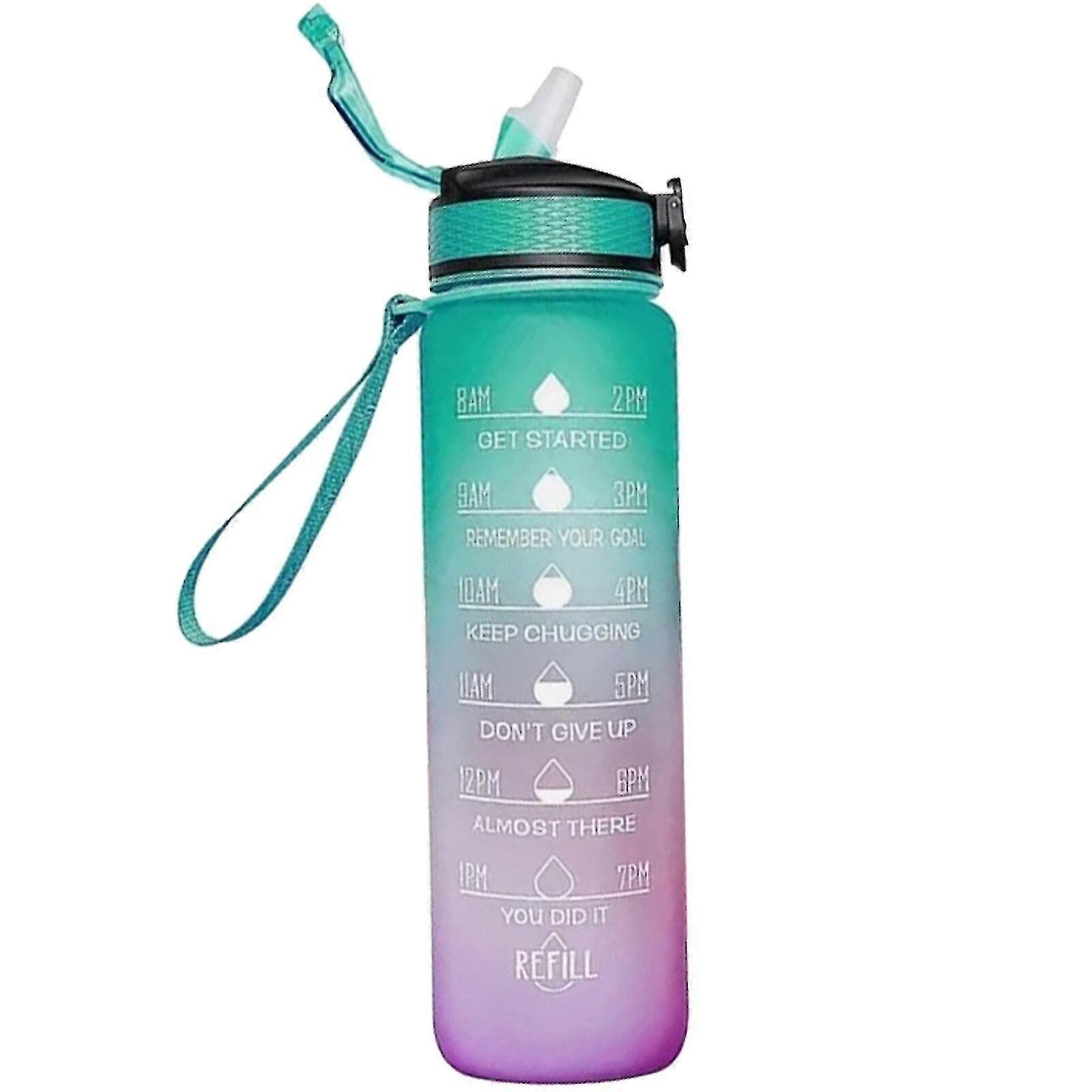 1000ml Bpa-free Sports Water Bottle With Time Marker And Motivational Quote, Leakproof And Dustproof, Tritan Plastic With Durable Straps