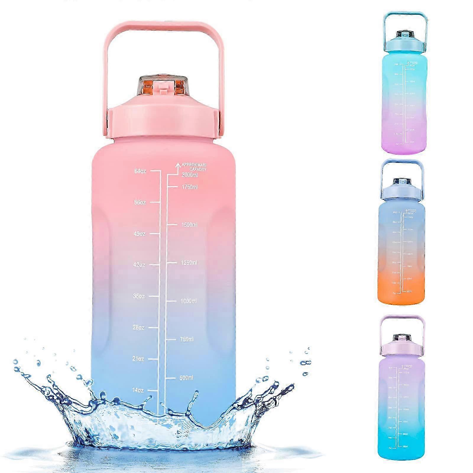 2L Motivational Water Bottle with Time Markings - BPA Free, Leak Proof, Straw, Lock