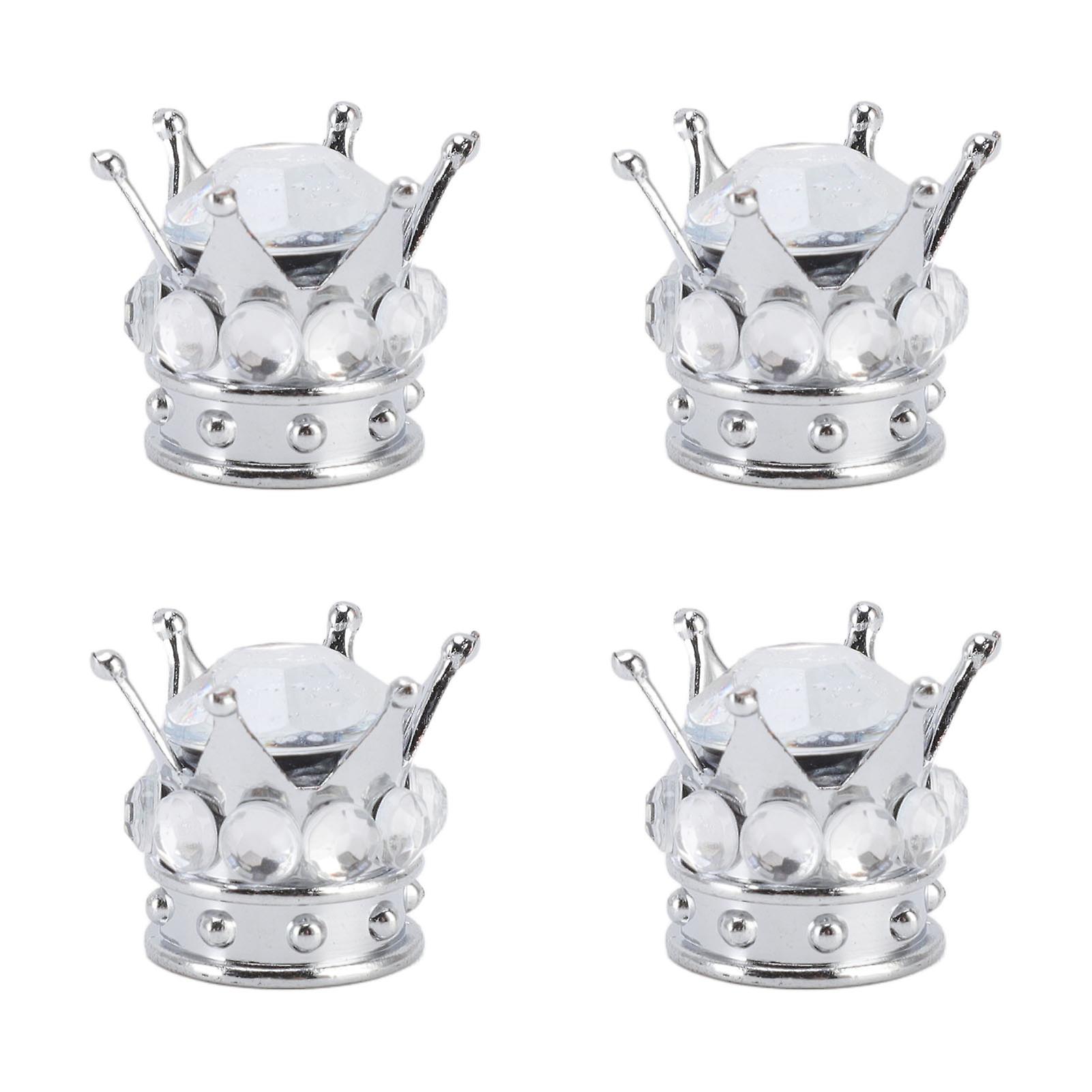 4 Pieces Tire Wheel Stem Valve Cover Caps Crown Diamond Style Universal for Cars Trucks Bicycles White