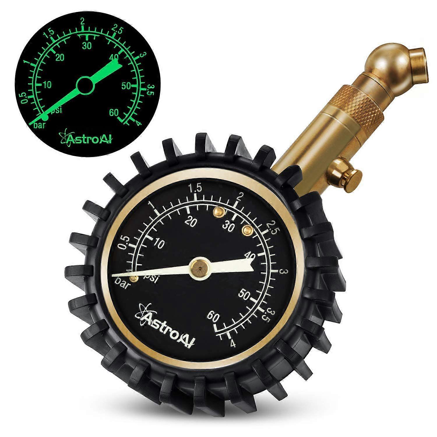 Tyre Pressure Gauge, 60 PSI Portable Heavy Duty Mechanical for Car Truck Motorcycle Bicycle with Glow Dial