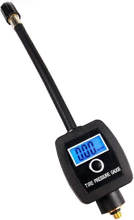 EASY TO USE - The tyre gauge pressure checker is easy to use and works, just screw on FUNCTION - the digital tire pressure gauge is designed to accurately check the tire pressure PRECISE CONTROL - The other end has a connecting thread that connects your pump and measures the air pressure while pumping, allowing you to control the inflation pressure more precisely WITH SCREEN - LCD display with backlight can clearly display the tire pressure. It is easy to read during the day or night; can switch units PSI, BAR, KPA Description The Digital Tire Pressure Gauge can accurately check the tire pressure, and the built-in exhaust valve can quickly decompress the inflated tire. Durable rubber hoses and high-quality accessories have high wear resistance, corrosion resistance and drop resistance, which prolongs the service life of the product. Features Tire pressure gauge -Color: Black. -Material: Plastic. -Size: Length: 19 cm/7.48 inch. Head: 6.2x3.85x2.6 cm/2.44x1.52x1.02 inch. Model: PM100 Battery: 2032 button battery Package Including 1 pcs* Tire pressure gauge/