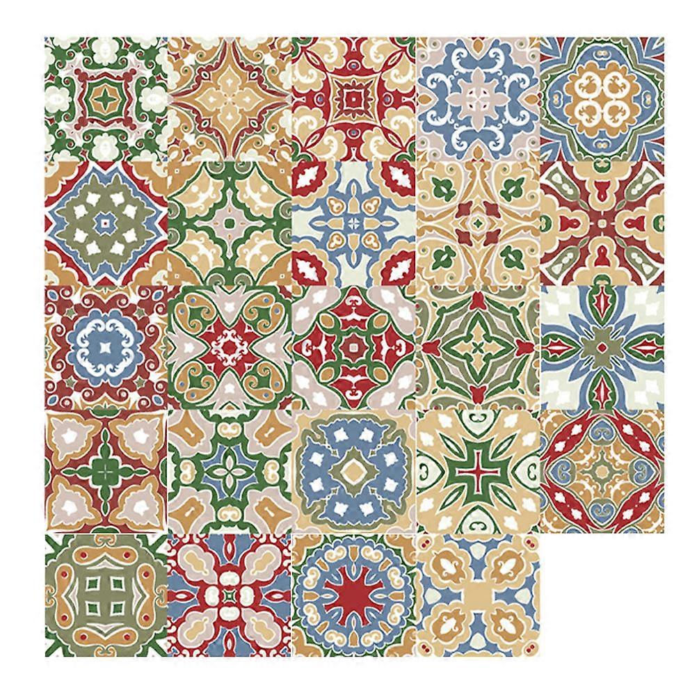 Tile Paper Stickers Vintage Tile Decal Peel And Stick Home Renovation Multi-Colored 15X15X0.1Cm Stain Resistant 24Pcs