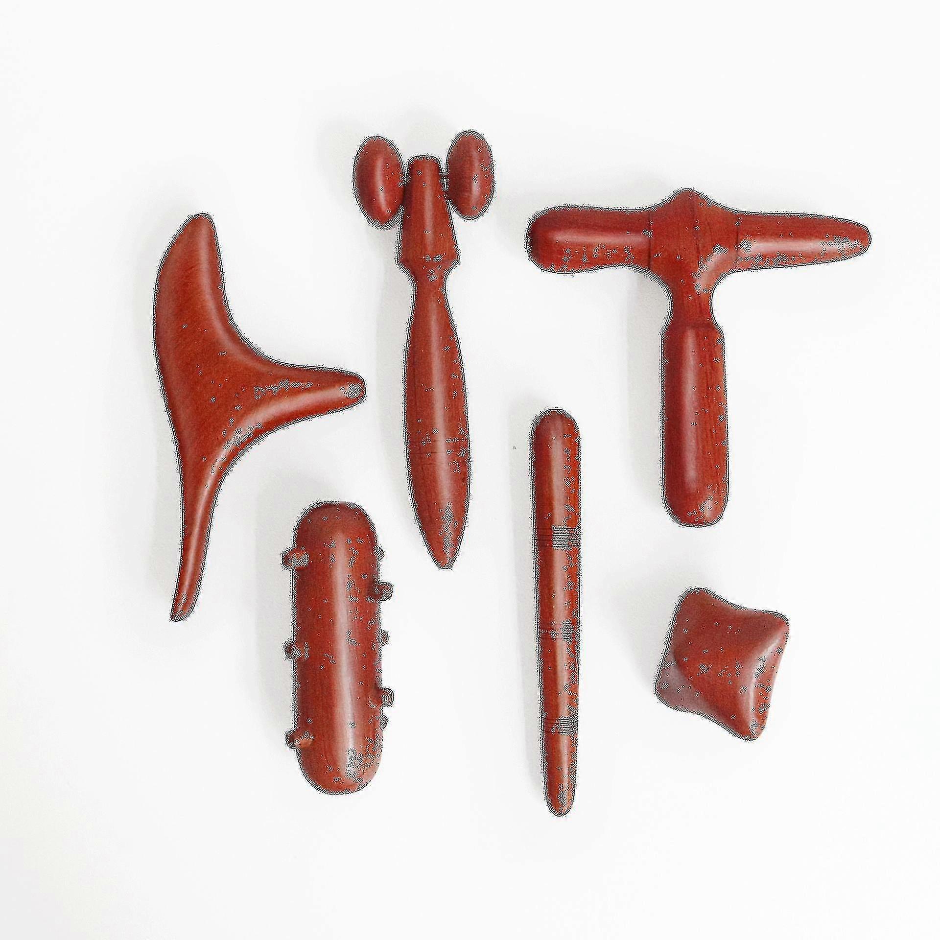 Set 6 Pcs. Traditional Thai Massage Wooden Stick Tool Hand Head Foot Face Body Massage Tool Massager Red Wood(6pcs