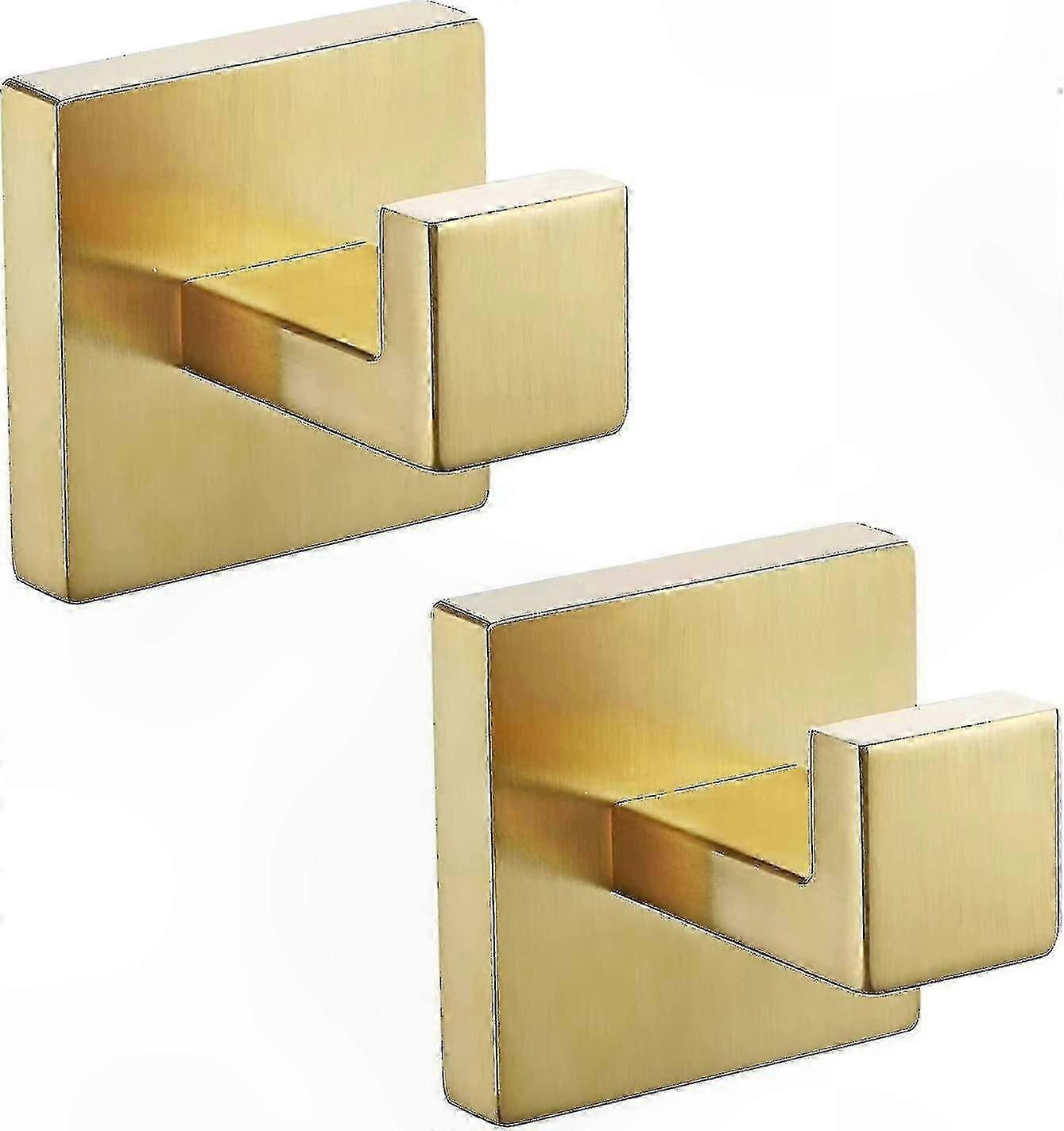 Square Gold Wall Hooks for Towels and Robes, Stainless Steel Bathroom Shower Hooks (2 Pack)