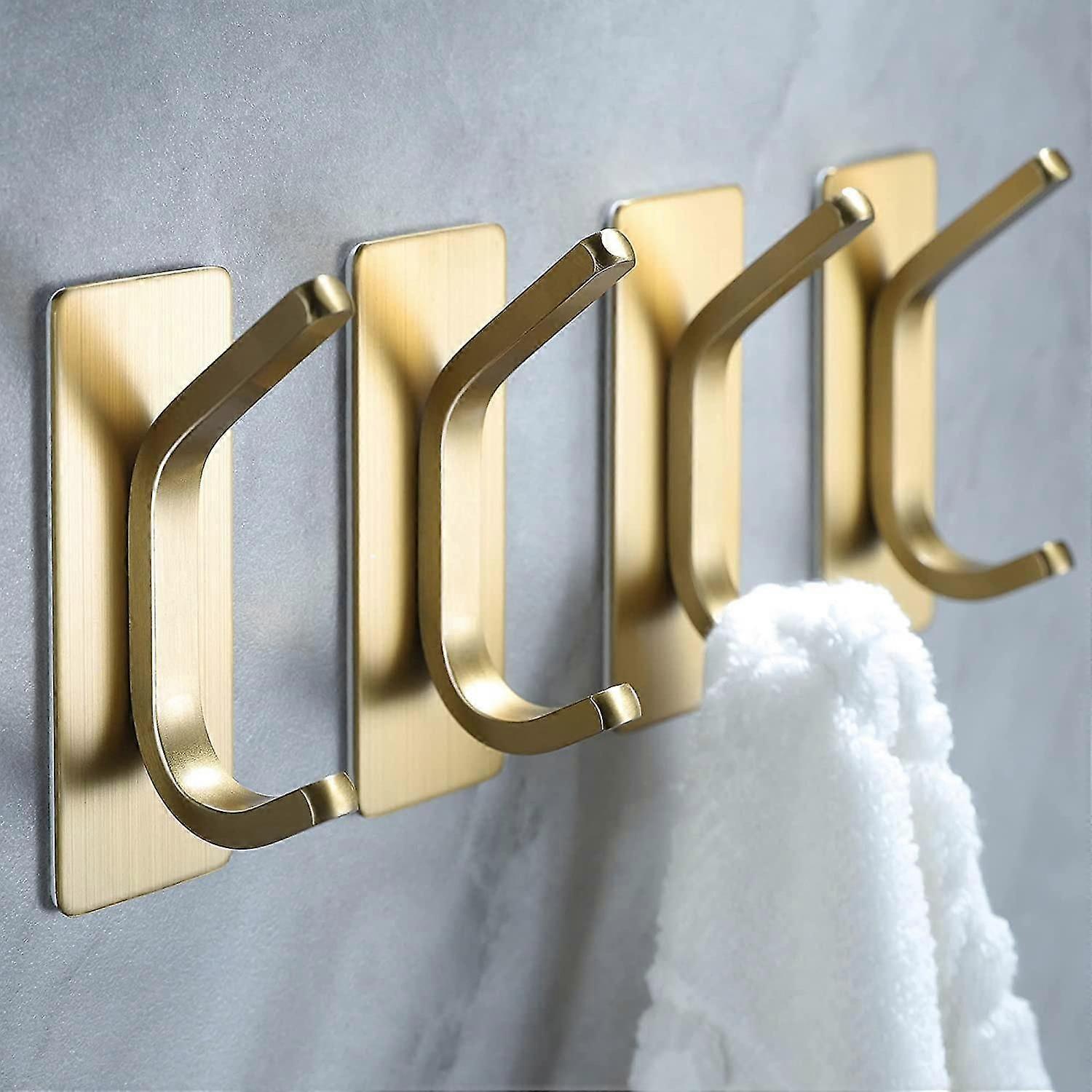 Towel Hooks/adhesive Hooks - Brushed Gold Wall Hooks For Hanging Coat, Hat,towel Robe Hook, Bathroom And Bedroom 4-packs, Stainless Steel