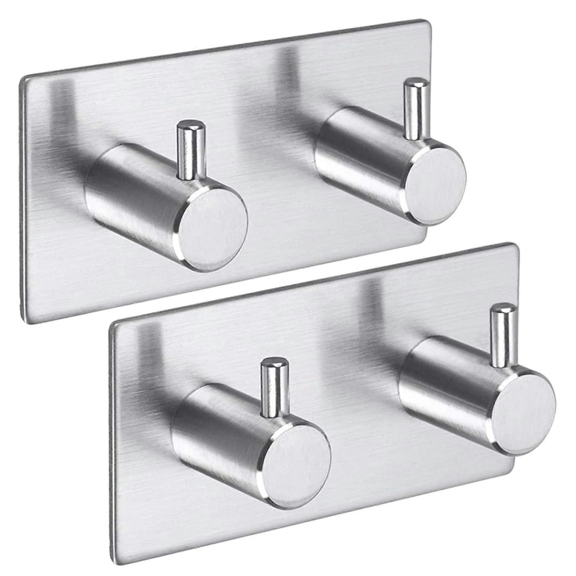 Towel Rail No Drilling Adhesive Hooks SelfAdhesive Wall Hook Towel Hook Stainless Steel for Bathroom and Kitchen Silver Silver (Pack of 2)