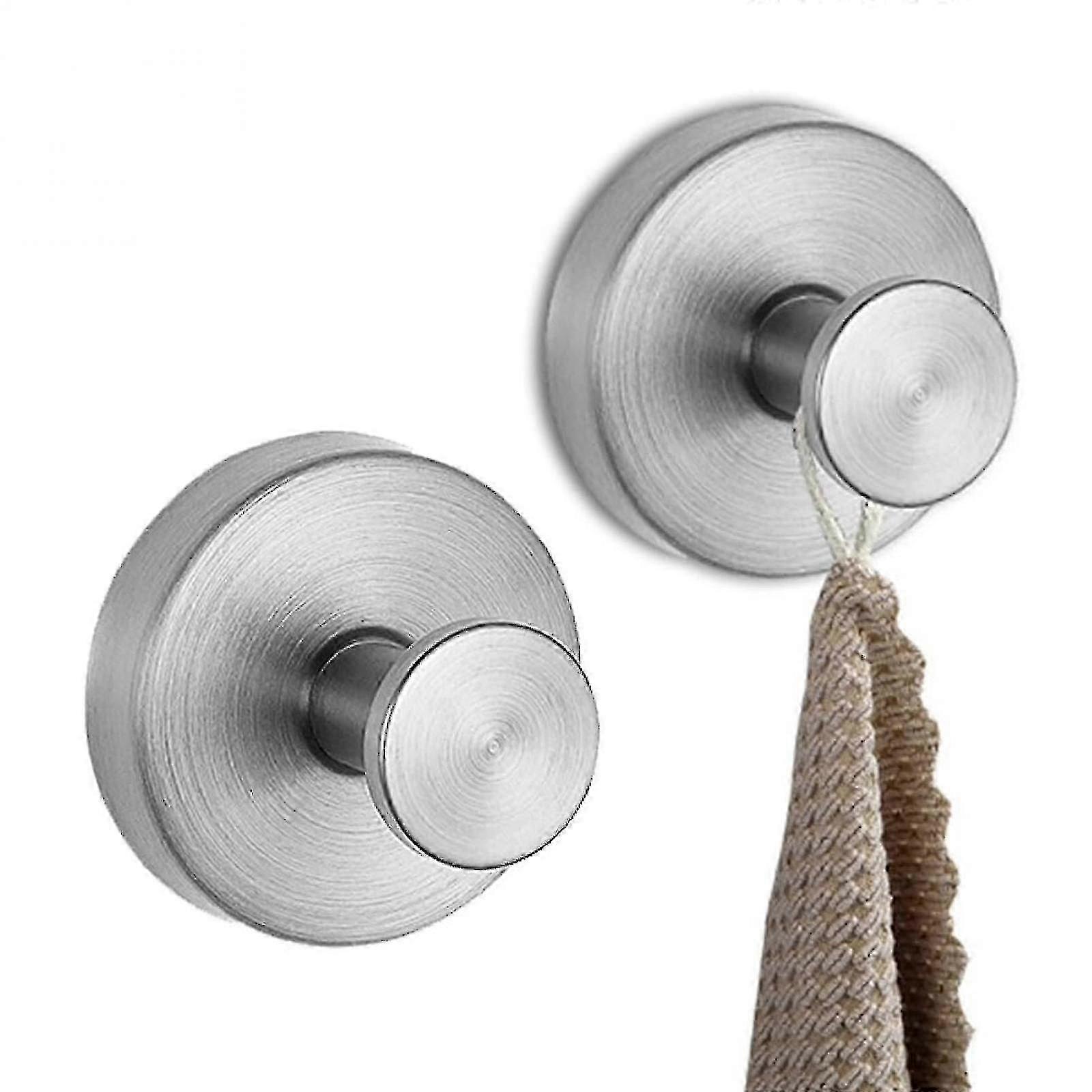 2 Pack No-Drill Stainless Steel Suction Hooks for Towels, Loofah on Glass, Tile, Mirrors - Silver