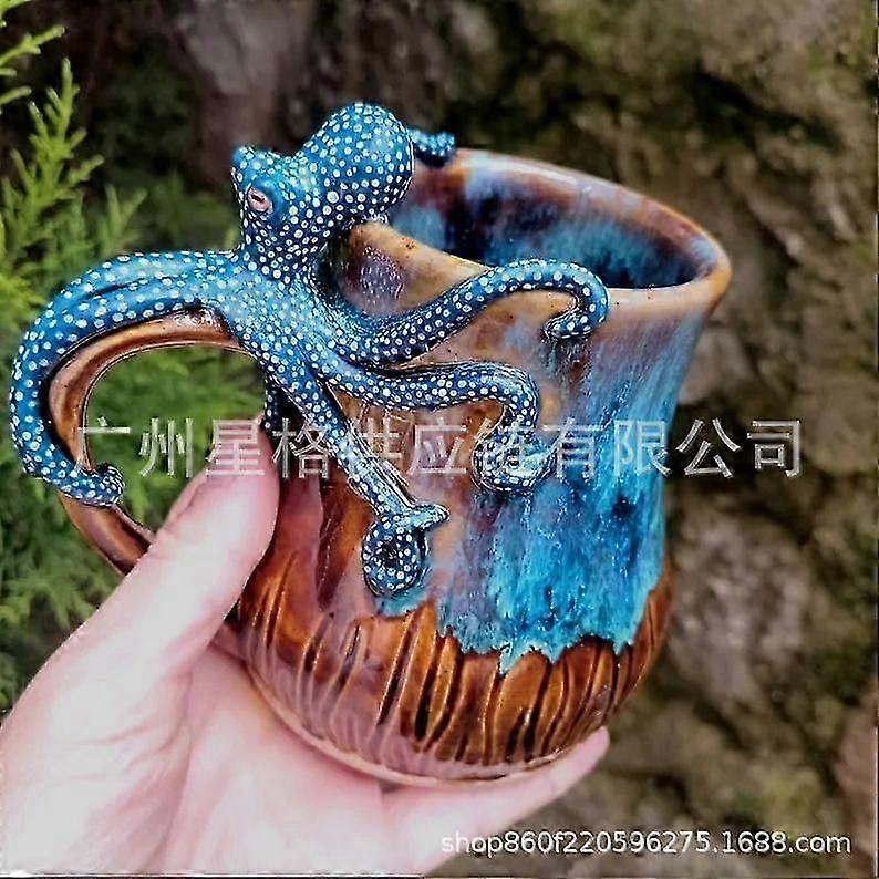 Octopus Handle Novelty Ceramic Cup Sea Aquatic Design for Hot Drinks Tea Coffee Hot ChocolateBlue Octopus Mug