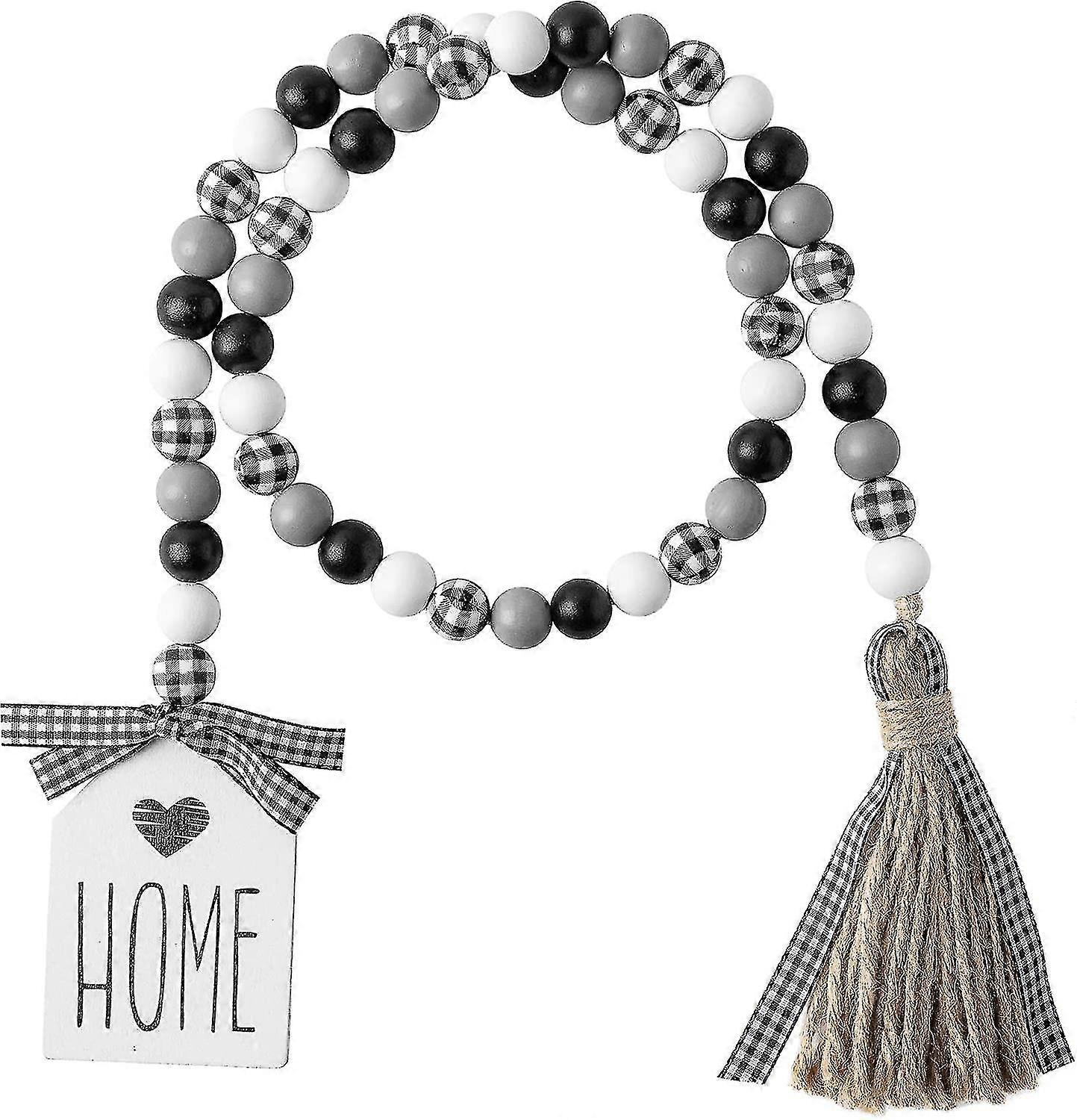 85cm Black And White Plaid Wood Bead Garland With Tassel Decor