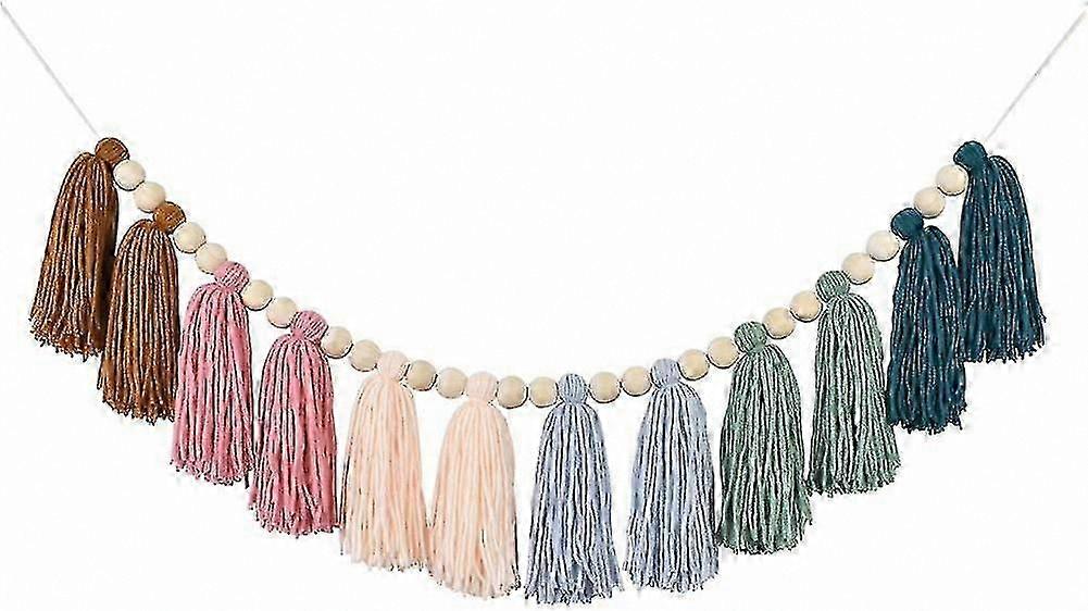 BOHO GARLAND: Bright rainbow boho tassel garland bursting with soft color and texture perfect addition to nursery, kid's bedroom or and holiday decorating. .MATERIAL: Using earth-toned color yarn and natural wood bead. Soft texture, comfortable feel, will not stain your wall. .GIFT: As a thoughtful gift for birthday party, baby shower, or Christmas. Vibrant colors brighten up the toddlers room. Add sweet feeling to the space. .ADORABLE SIZE: 33inch total length. And length of each tassel is 5inch.