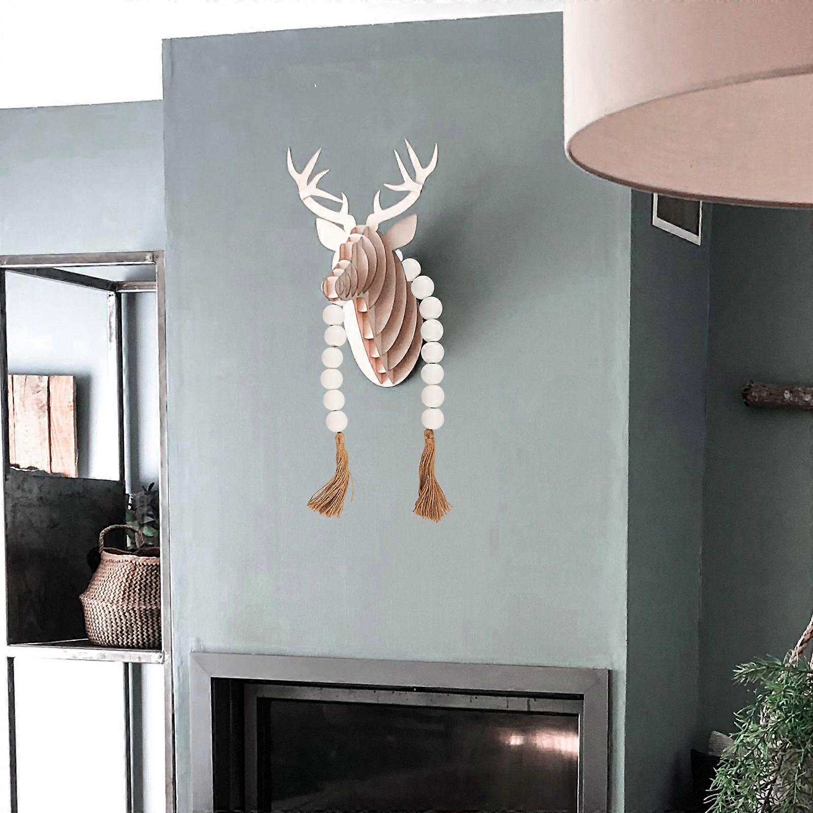 Tassel Garland Hanging Tassel Garland Party Decor for Bookshelf White Wooden and Cotton Rope Decoration 1Pack