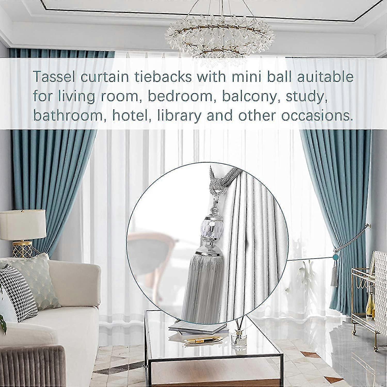 Tassel Curtain Tiebacks, 4 Pack Curtain Holdbacks, Window Drapery Decorative Crystal Ball Tassel Bra