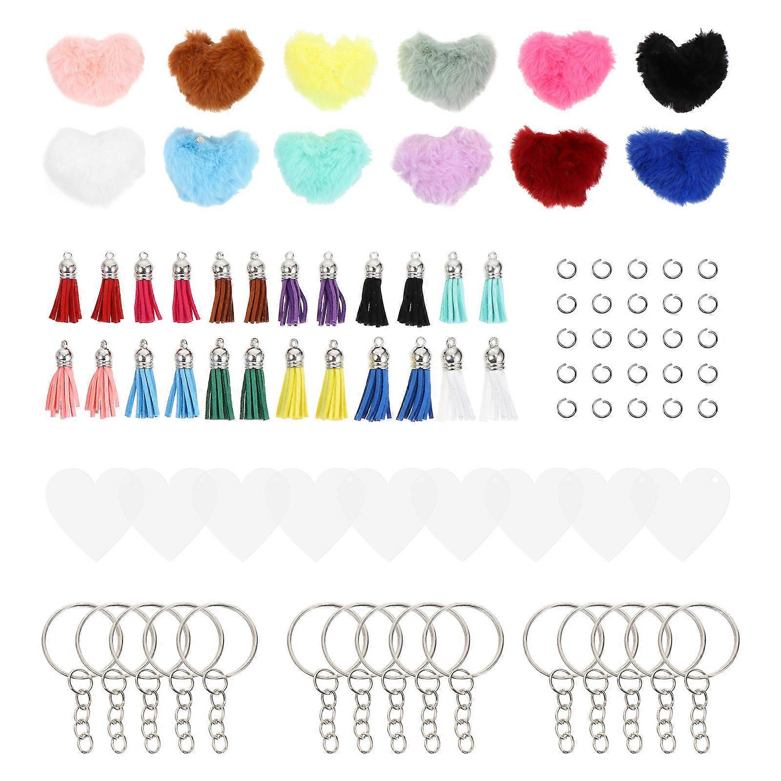 This is a set of keychain making accessories. Made by for long-time use. The creative keychain can be decorated with the tassel and the acrylic heart sheets as you like. It can be a special present for your lover or friends by DIY. Features -Color:Assorted Color -Material: Polyester & Acrylic & Artificial Wool -Packing Size: Approx. 26.00 x 18.00 x 4.00 cm / 10. x 7.09 x 1.57 inch - Smooth surface with fine round edges, safe to use. - With hole design, easy and convenient for you to make all kinds of crafts. - DIY it according to your own needs, which can increase your hands-on ability. - Not only can the boring time, you can also make beautiful keychains. - A perfect present for friends and family. It can also be a party favor, give your guest a little surprise. Package list: x plush balls x acrylic discs x tassel pendants x keyrings 48 x jump rings