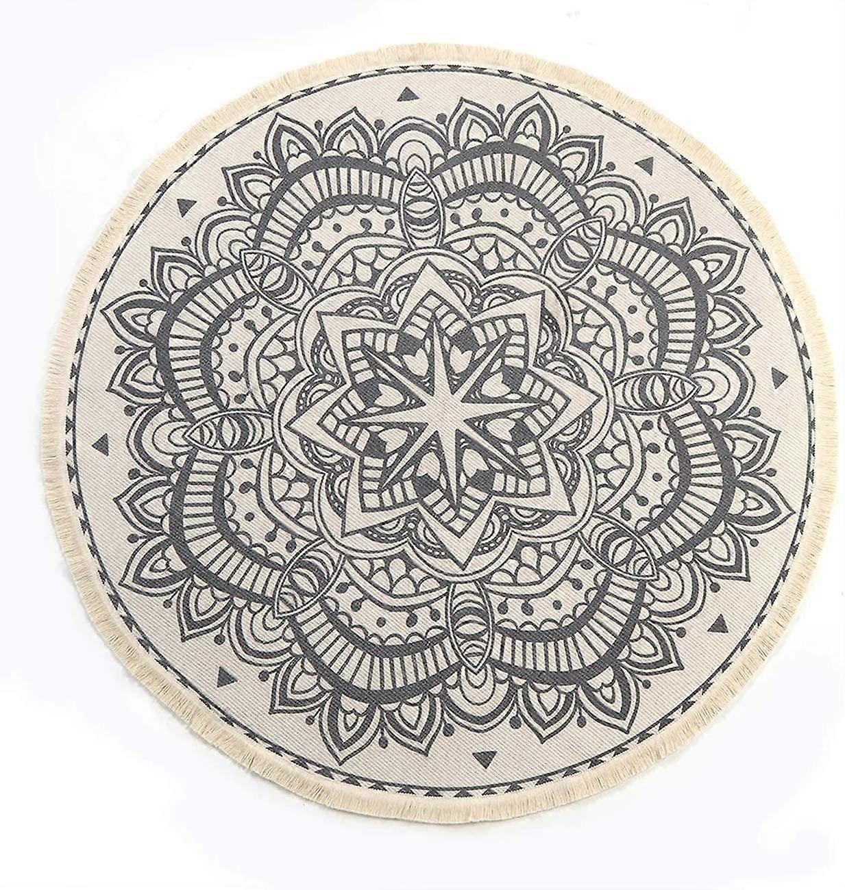 Vintage cotton rug with tassels, suitable for living room, bedroom