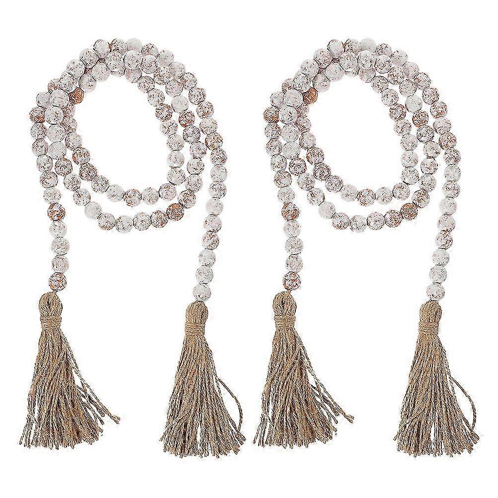 2pcs White Wood Bead Garland with Tassels - Farmhouse Decor, 148x1.6x1.6cm