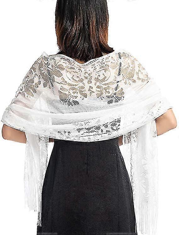 SUITBLE SIZE: This lace shawl with excellent coverage and sufficient length, the beautiful elegant shawl covers your shoulders arms perfectly and gives your hands freedom. lightweight and soft, it's easy to carry. MEASUREMENT: 72.8 x 24.8 (185x 65 cm). Oversized shawl fits perfectly over any outfit, dress, gown, blouse, jacket, bikini, shirt and etc.. One size fits most women.
