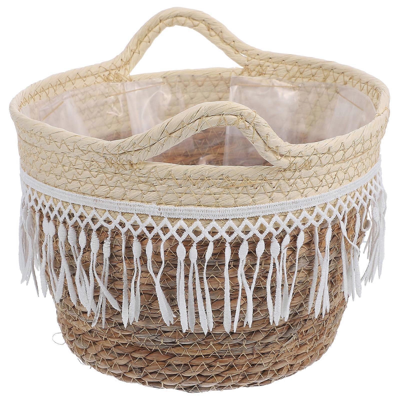 Handwoven Plant Basket with Tassel Medium Woven Flower Planter with Liner for Indoor Home Decor & Flower Organization