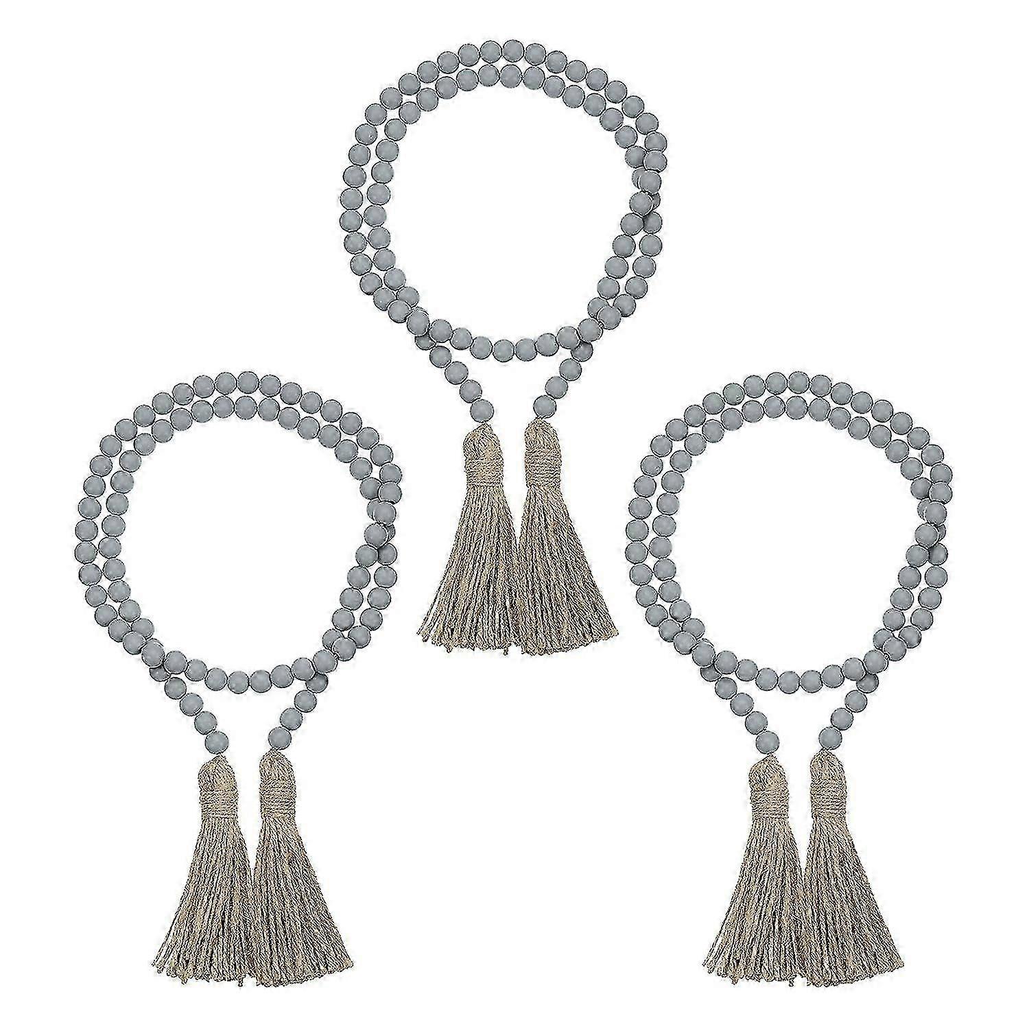 3 Pcs Wood Bead Garlands With Tassels 3.7 Feet Farmhouse Bead Tassel Hanging Garland For Wedding Ho