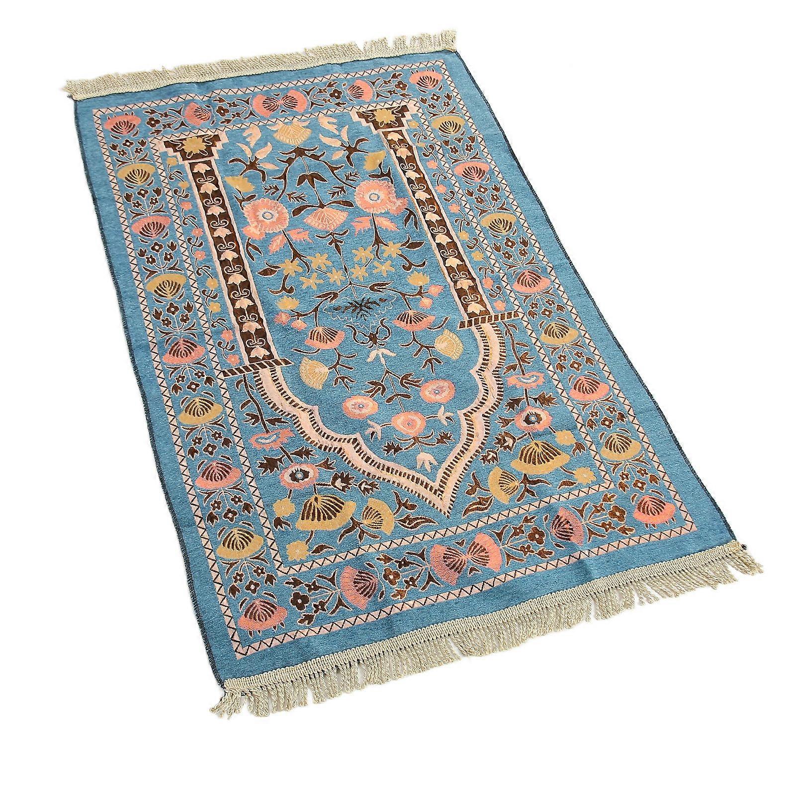 Tassel Pilgrimage Blanket Soft Chenille Prayer Carpet Multipurpose Prayer Rug for Bedroom Table Corridor Lake Blue